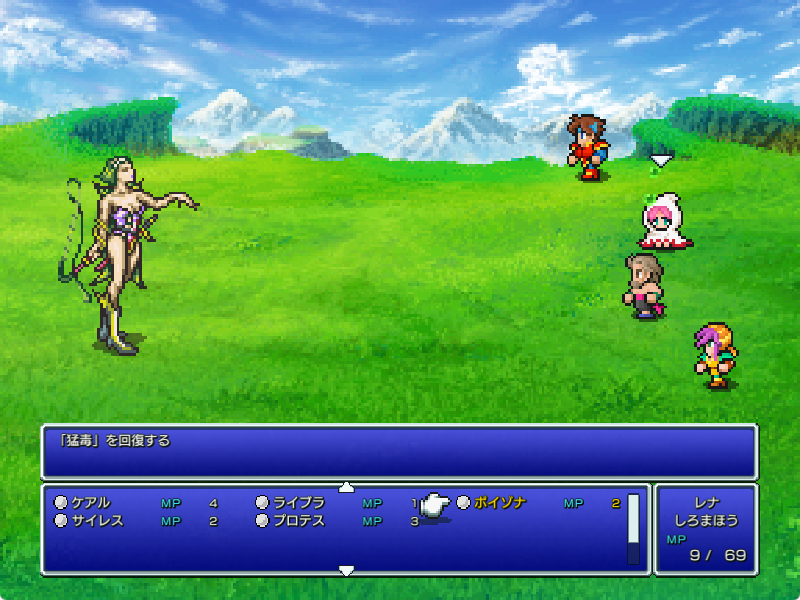 レナの毒回復は白魔法の「ポイゾナ」もしくはアイテムの「毒消し」を使おう