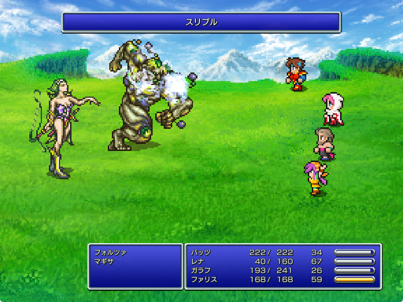 勝利するとマギサはムチ(この先で手に入る魔獣使いが装備可能)、フォルツァは力の薬(序盤終わりに手に入るジョブ用のアイテム)が手に入ります。